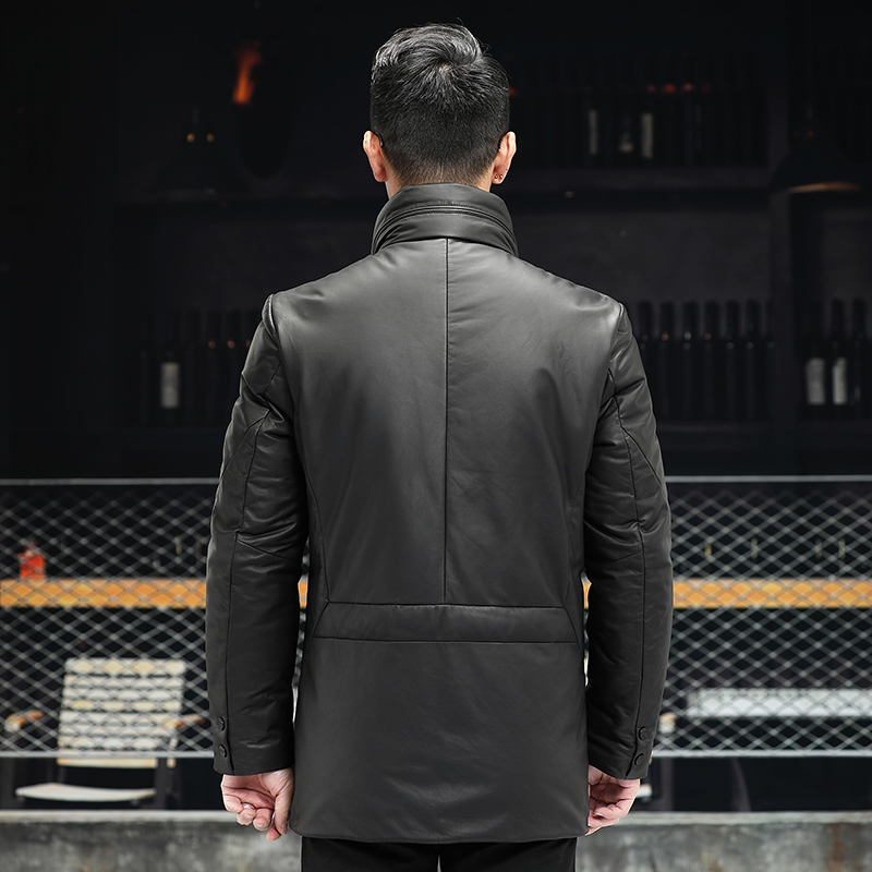 Winter new leather down jacket men's Haining leather jacket mid-length stand collar sheepskin windbreaker thick coat
