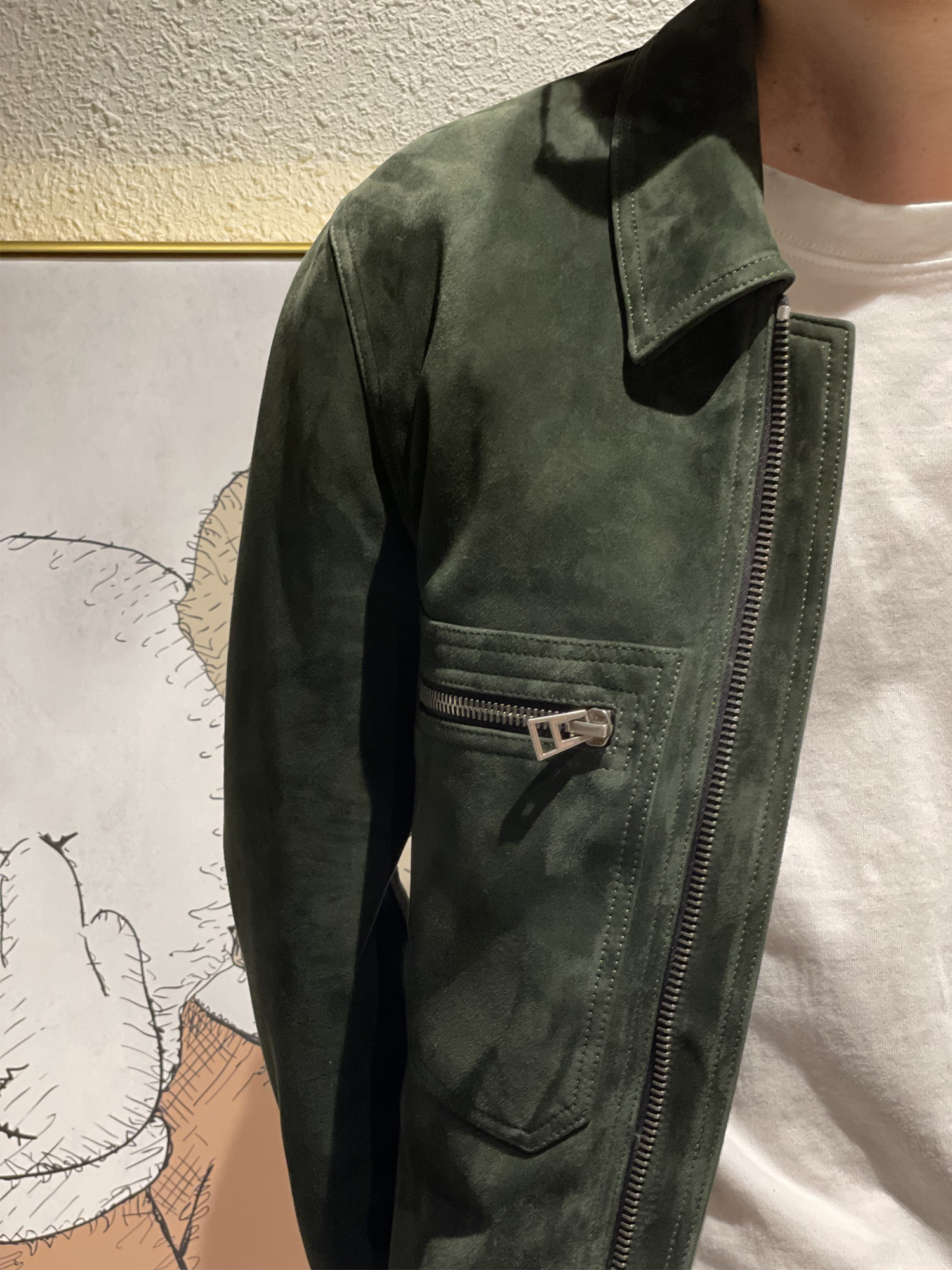 LA CALIFFA "Spring of Parisians" TF texture turd small lambskin gentlemen denim jacket leather clothes