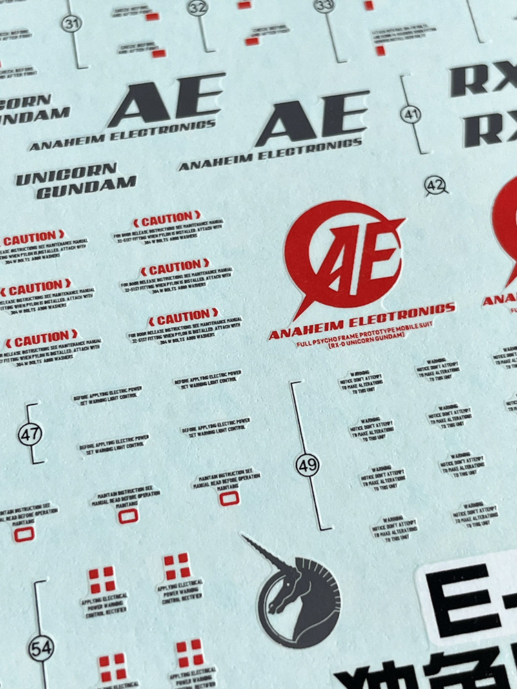 EVO PG unicorn water post with regular version RX-0 Unicorn Gundam Fluorescent Water Sticker