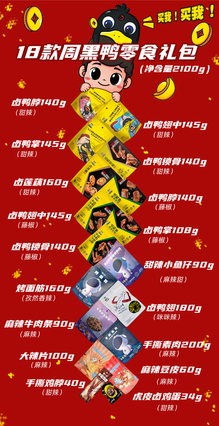 Zhou Black Duck Mid-Autumn Snacks Snacks Package Meat Food Casual Relief Wuhan Spicy Duck Neck Max Box