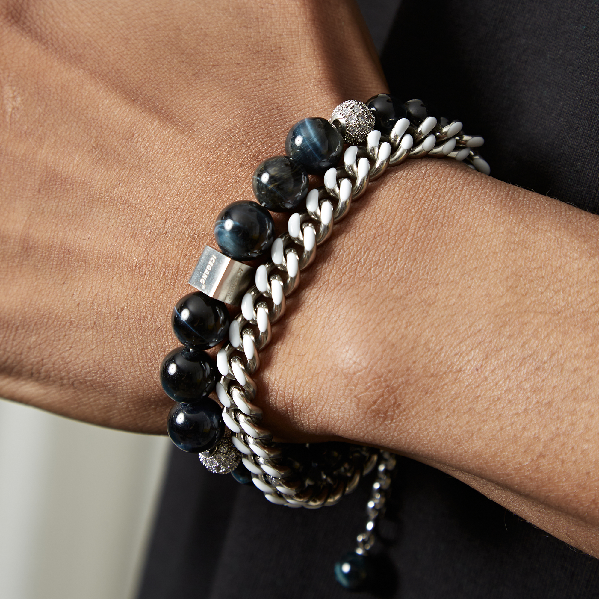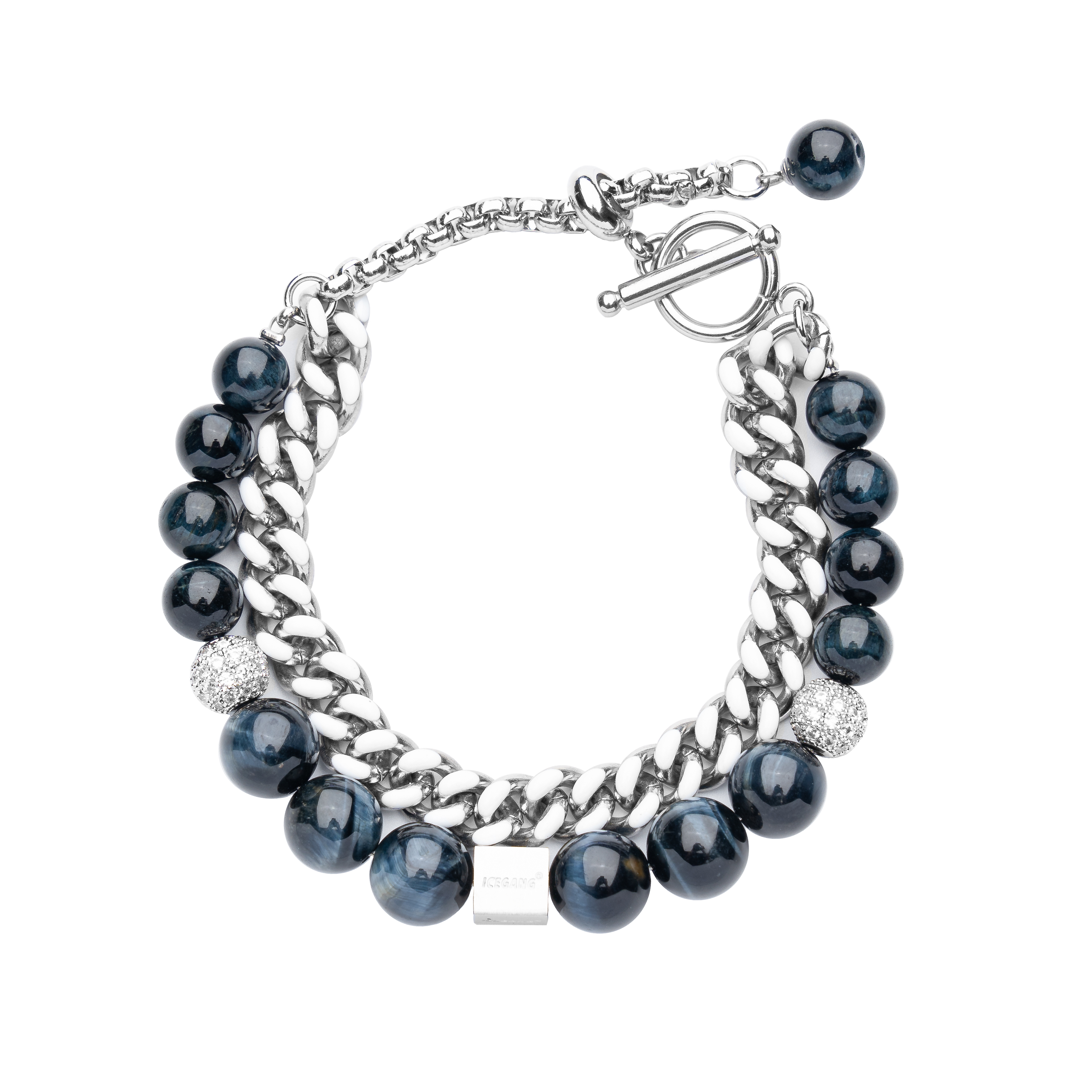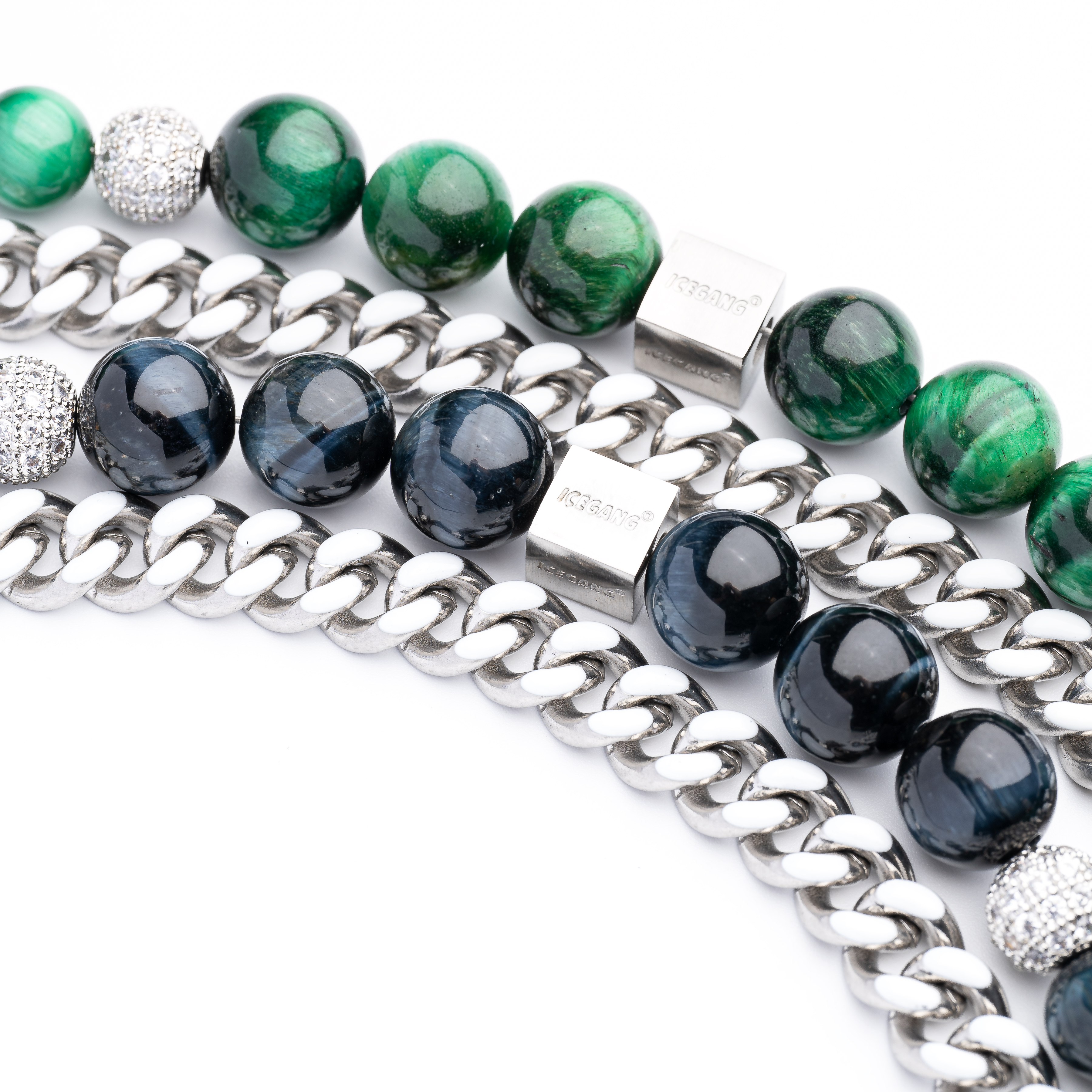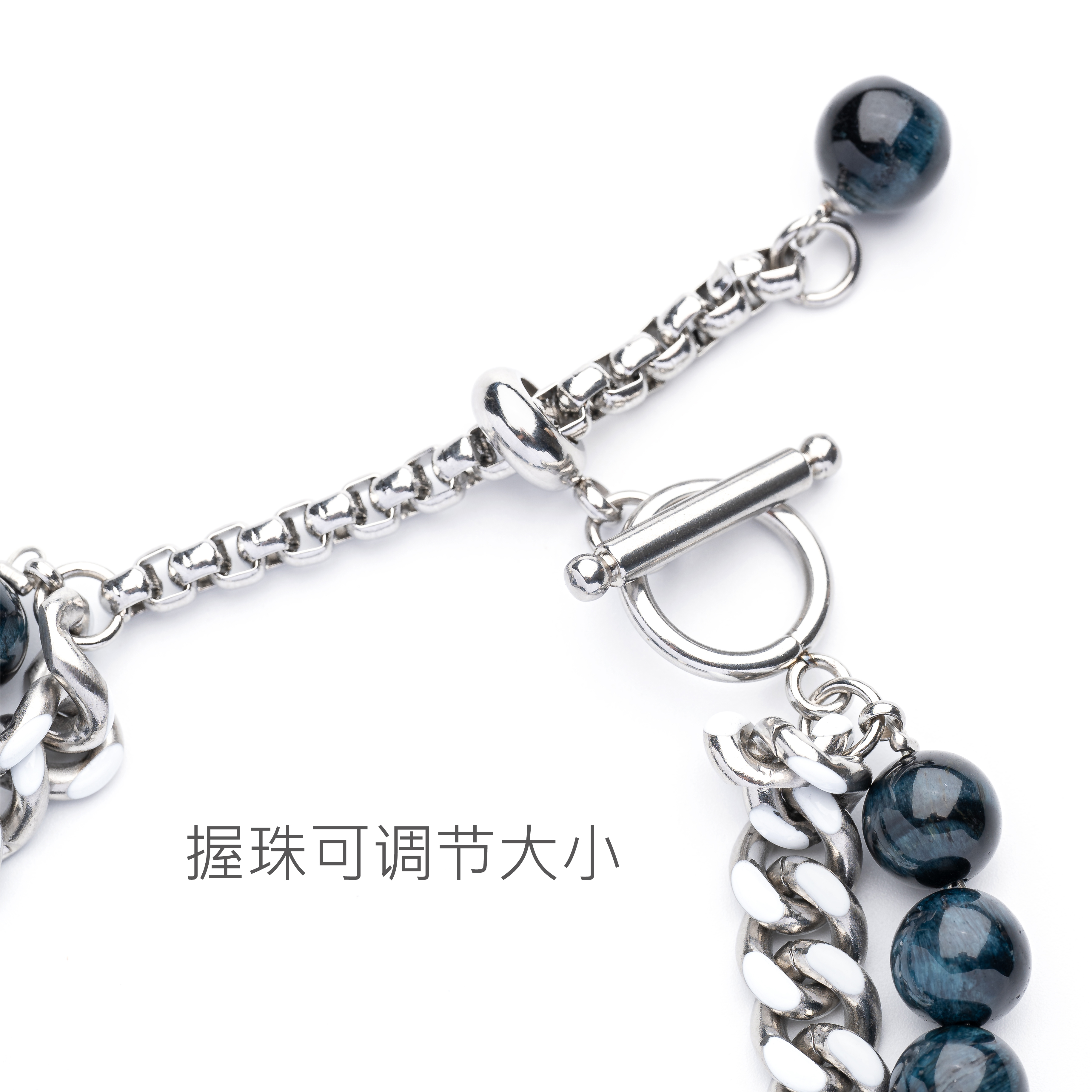 ICEGANG tiger eye stone Cuban chain adjustable double-layered hand-held men and women hip-hop tide brand niche ins blue and green