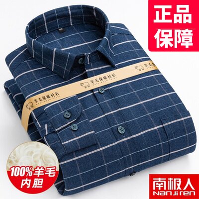 South Pole Upscale New Pint Plus Suede Warm Men's Underwear Pure Wool Liner Thickened Autumn Winter Men's Dress Shirt Big Size