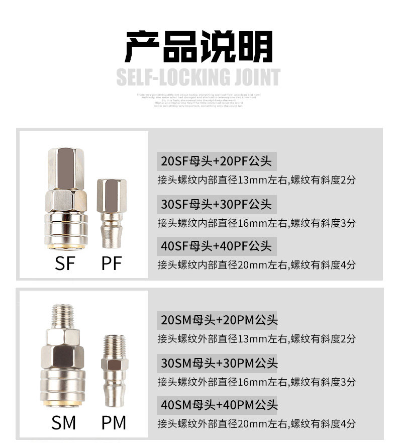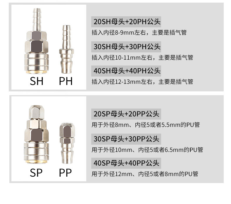 Pneumatic Tools Air Compressor Hoses Air Pump Accessories Self-Lock Fast Plug Pipe C Type Quick Joint SM PP SP20H
