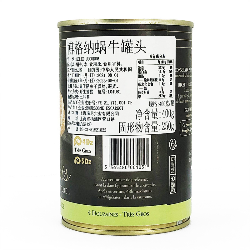French imports Borgnaway type of cochlear beef canned 400g white jade Borgina snail field snail flesh 48 grain dress