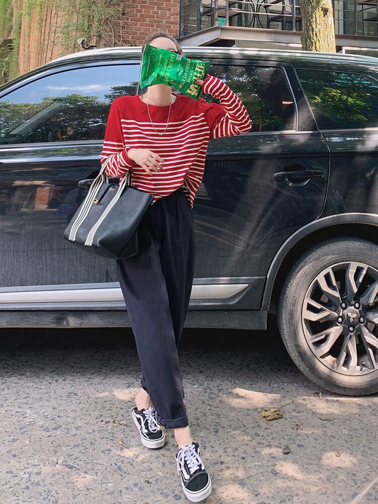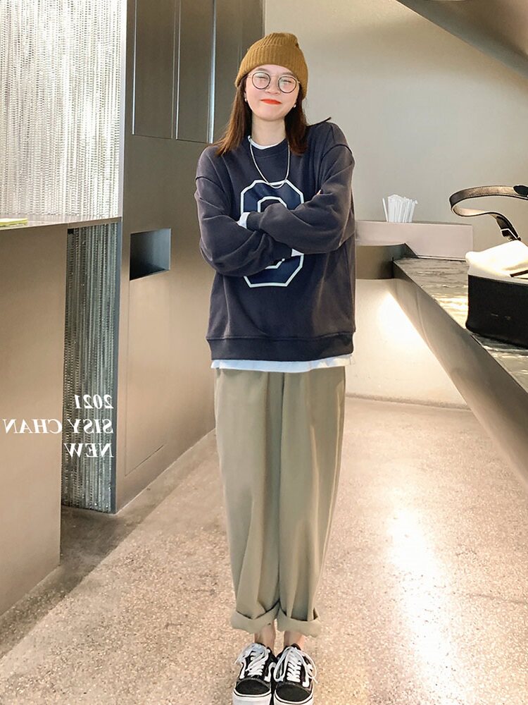 Hong Kong style retro high waist thin slit casual pants women's 2021 autumn Japanese all-match loose wide-leg straight-leg pants