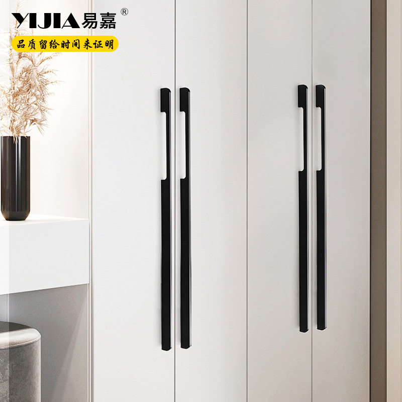 Easy Chia Black Wardrobe Door Lengthened Handle Modern Minima High-end Light Lavish Strip Integral Cupboard Drawer Cupboard Door Handle