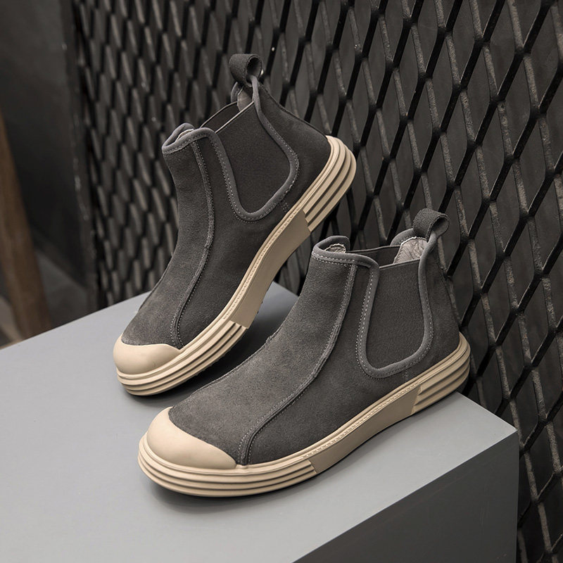 Autumn Martin boots men's leather mid-tube British casual short boots retro suede Korean version trend all-match high-top shoes