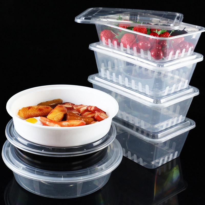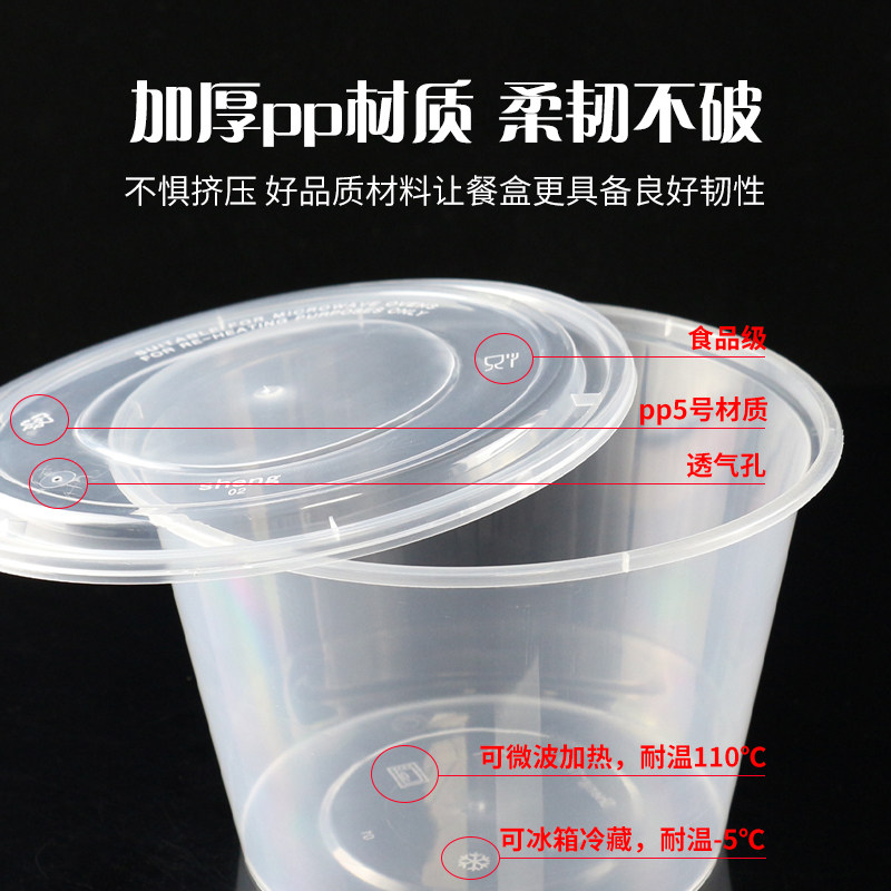 Transparent plastic lunch box one-time delivery packing bowl 1250ml packing box round with lid thickened soup bowl lunch box