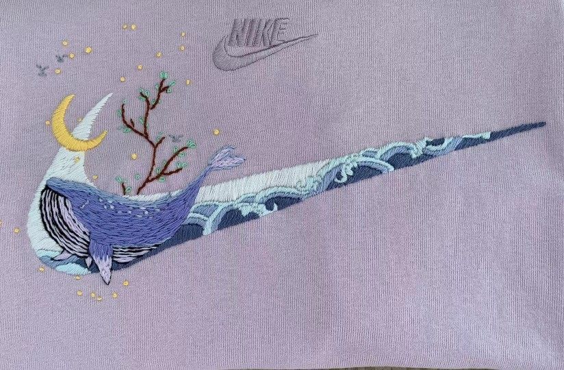 Nike Pure Handmade Diy Embroidered Material Bag Pure Cotton T-shirt For Boyfriend Lovers