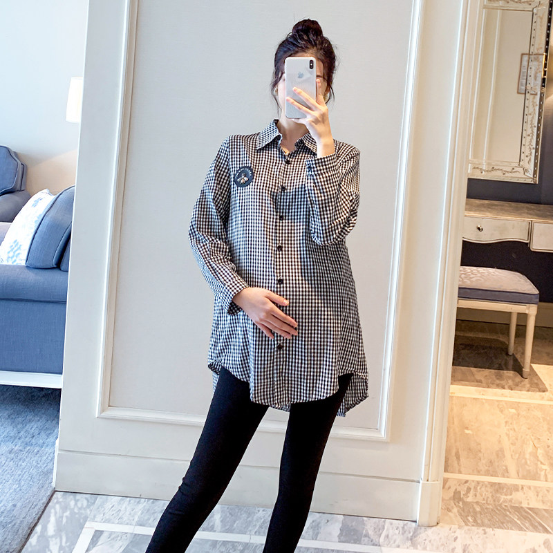 Maternity Tops Spring and Autumn Style Outerwear Mid-length Shirt Foreign Style Long-sleeved Shirt Dress Spring Suit Fashion Style