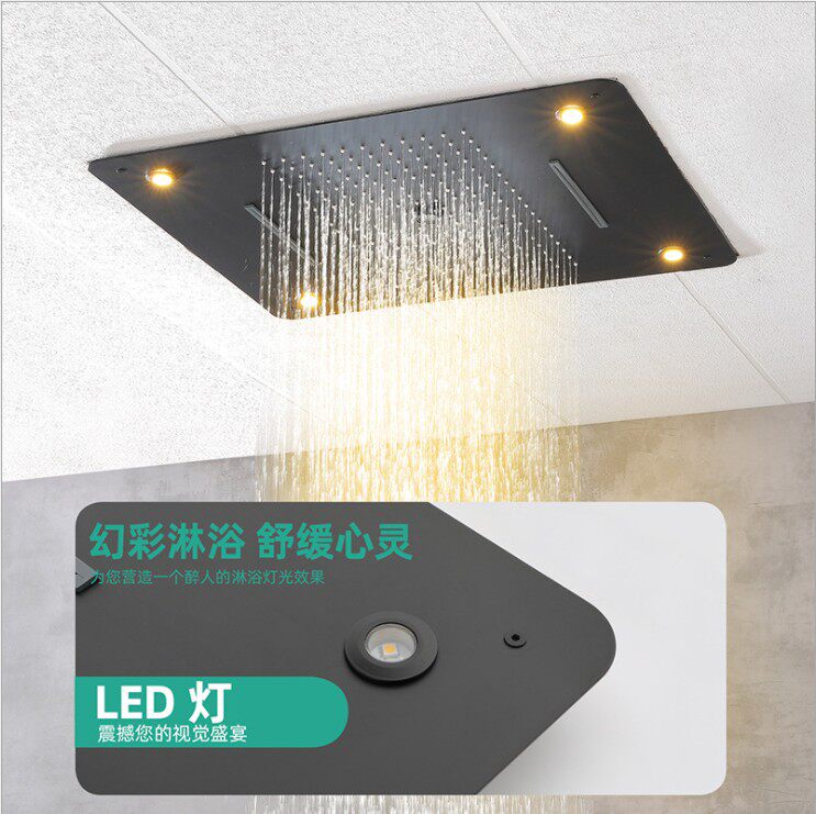 Five-function concealed shower shower nozzle kit thermostatic faucet suction top-screen shower head LED multifunctional shower system
