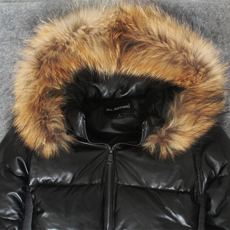 Youth leather leather coat men can take off the hat sheepskin down jacket men thick winter warm casual solid color jacket