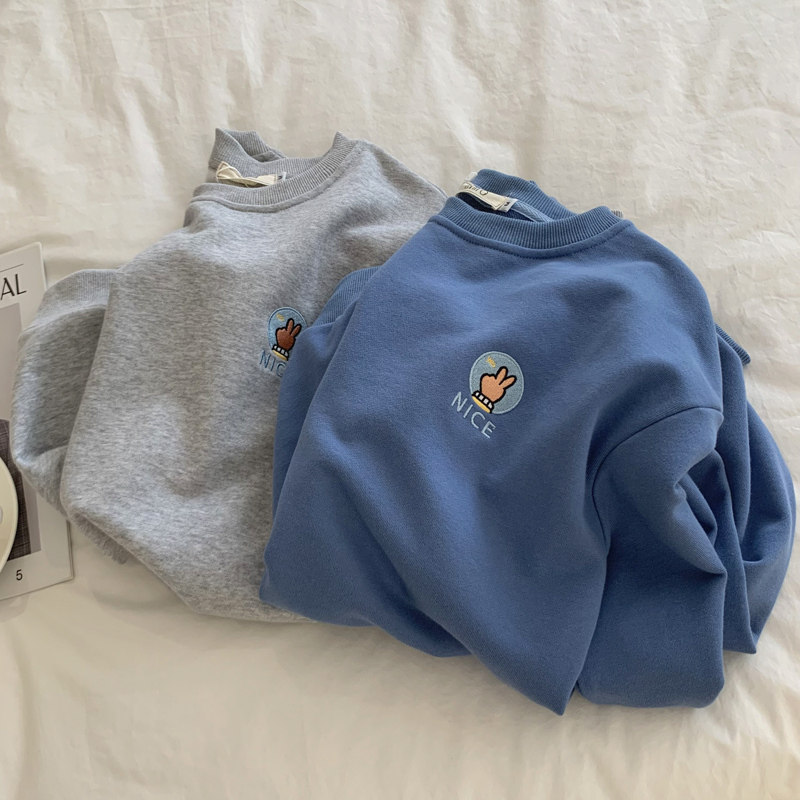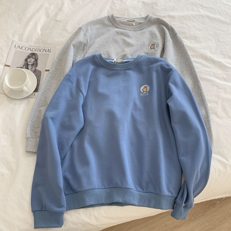 Breastfeeding clothing autumn and winter zipper fashion going out breastfeeding Korean version of the round neck pullover sweater women's loose cartoon embroidery top