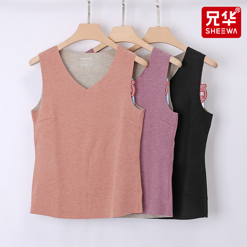 Brotherless silk warm vest lady V neckline body wool plus suede thick heat fiber underwear