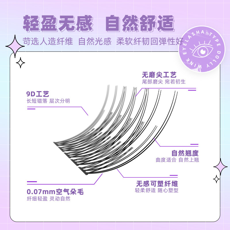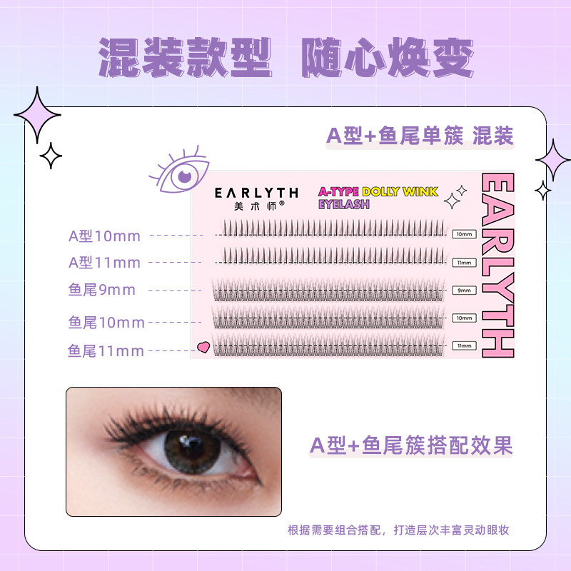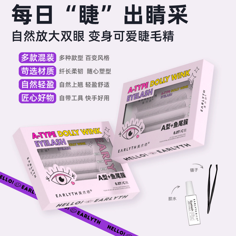 earlyth fine art teacher grafting fake eyelash suit single tuft female natural light self-glued fish tail fairy gross lashes