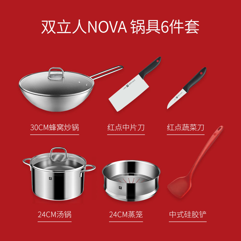 German double 6-piece set full set of practical stainless steel pot set full set of household frying pan soup pot steamer