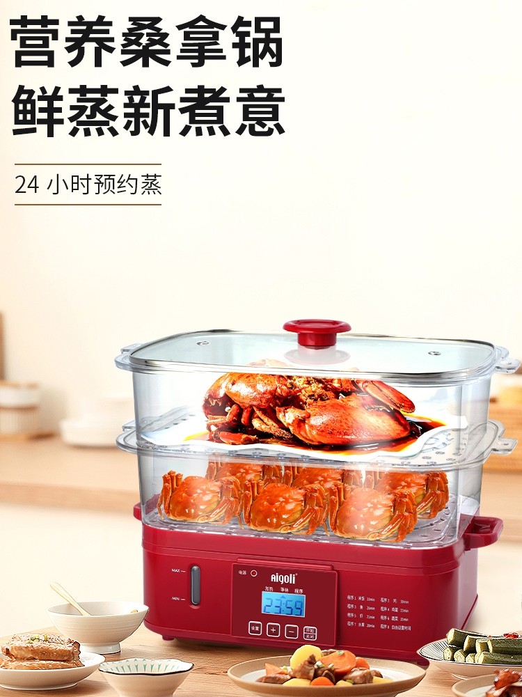 Aigoli Aigoli Electric Steam Cooker Multi-functional High Capacity Automatic Power Disruption Household Rectangular Transparent Multilayer Steam