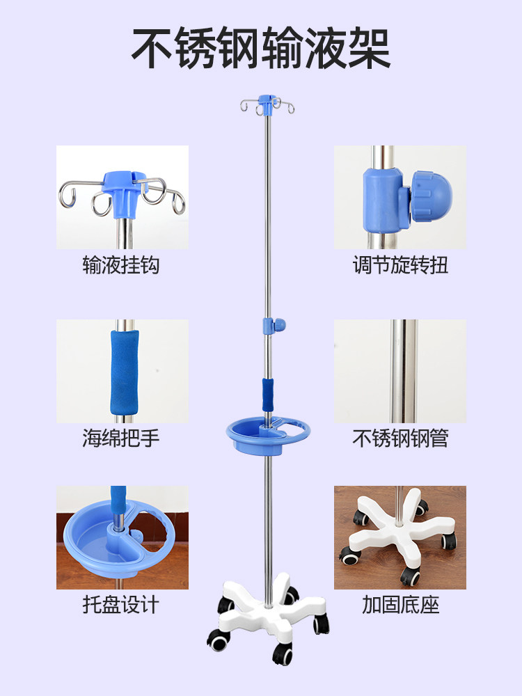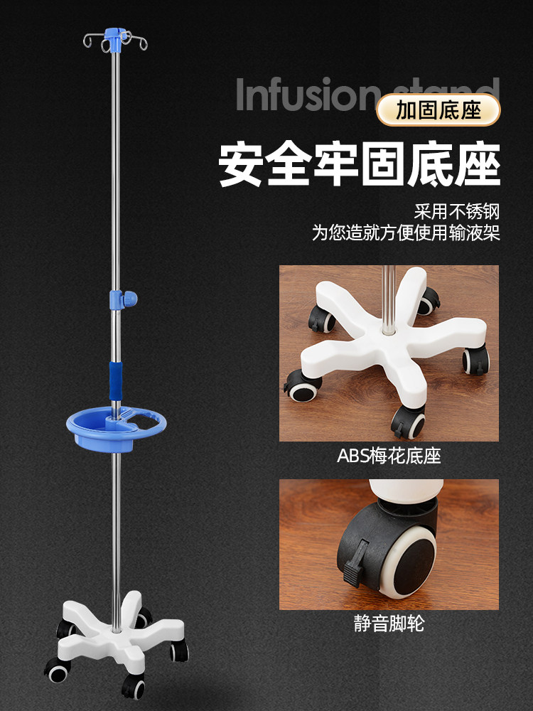 Infusion rack thickened stainless steel floor hanging bottle rack adjustable height mobile portable hospital clinic drip rack