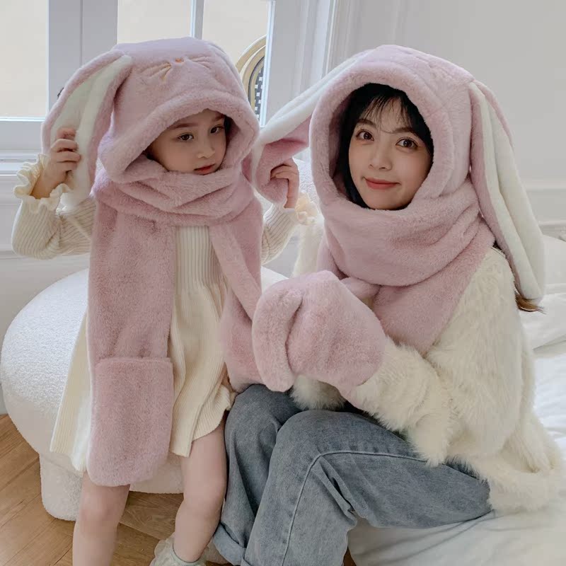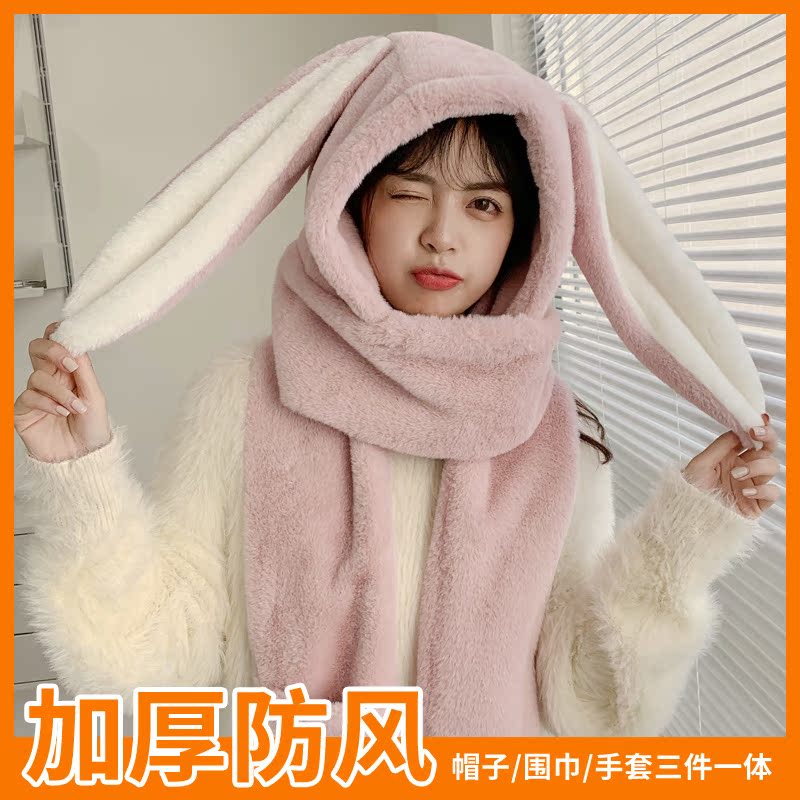 Hat, scarf, gloves, three-piece set, female winter vibrato, the same Korean version, cute trendy boys and girls plush scarf