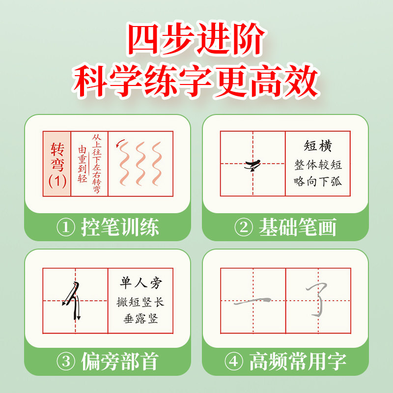 Running script high-frequency common words adult control pen training copybook line regular entry stroke stroke order commonly used radical basic training full set of junior high school students girls beautiful college students hard pen calligraphy practice calligraphy beginner pen copy tracing red
