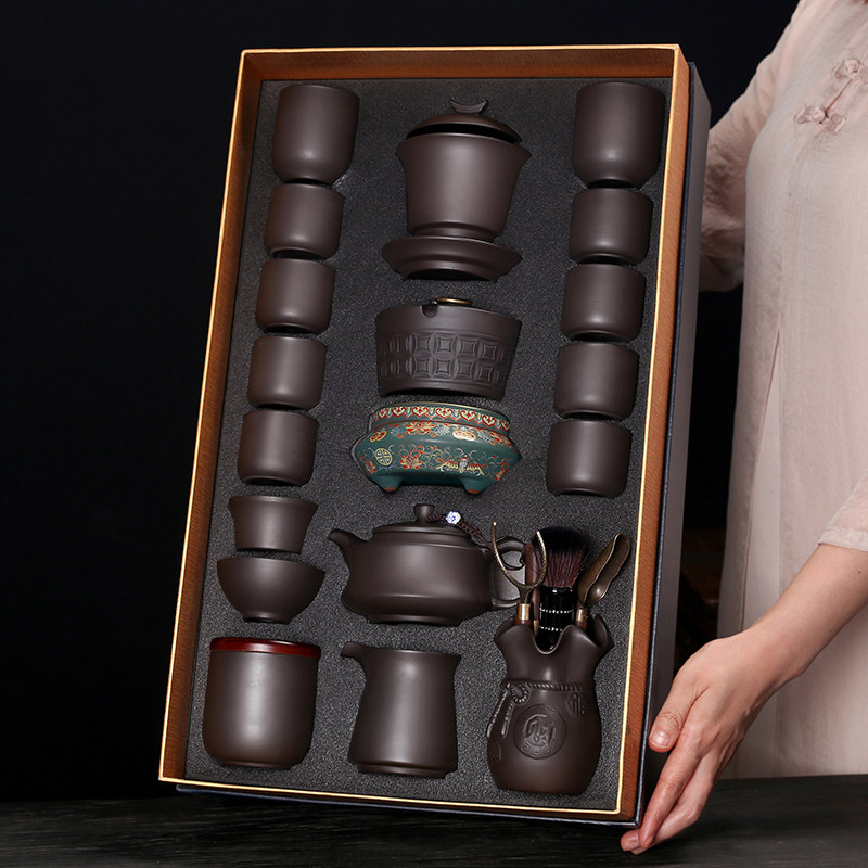 Kung fu tea set full household office ash ash oven purple teapot teapot cup cup gift box customization
