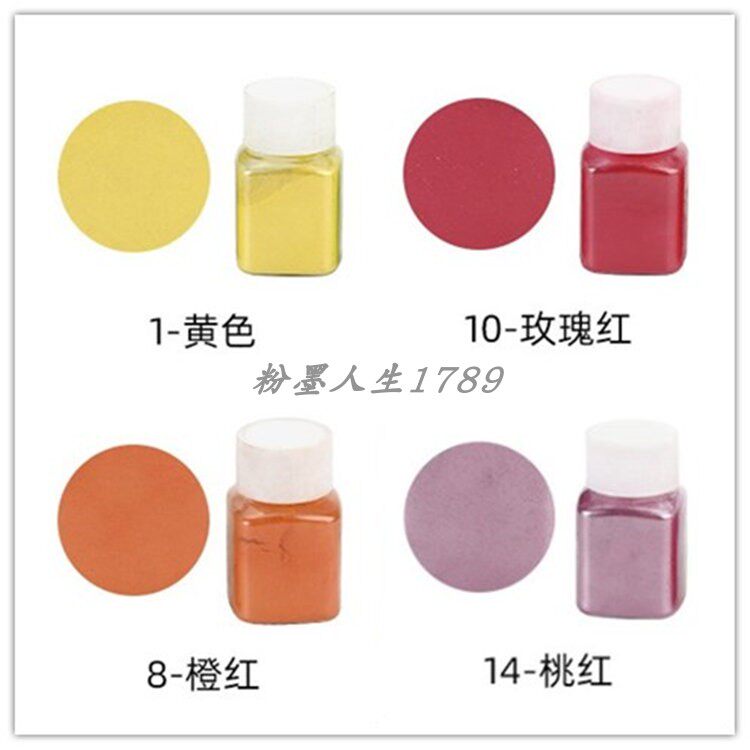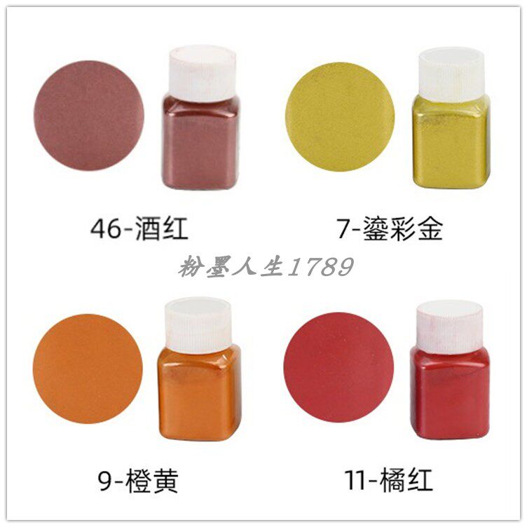 Dark blue one bottle 10 gr left and right Orange red one bottle 10 gr orange red one bottle 10 gr left and right deep red one bottle of 10 gr left and right color gold one bottle of 10 gr left and right orange yellow one bottle of 10 gr left and right rose red one bottle
