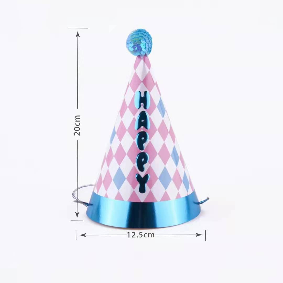 Plaid birthday hat Adult Children Baby year cake party decoration photo ball party hat