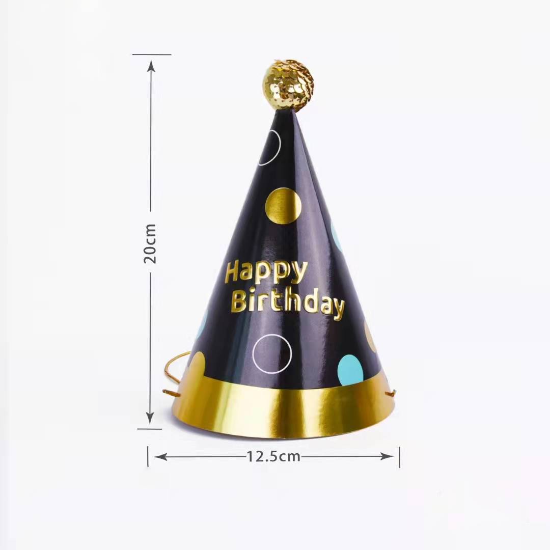 Pink and white plaid birthday hat (1) brown and white plaid birthday hat (1) black circle birthday hat (1)