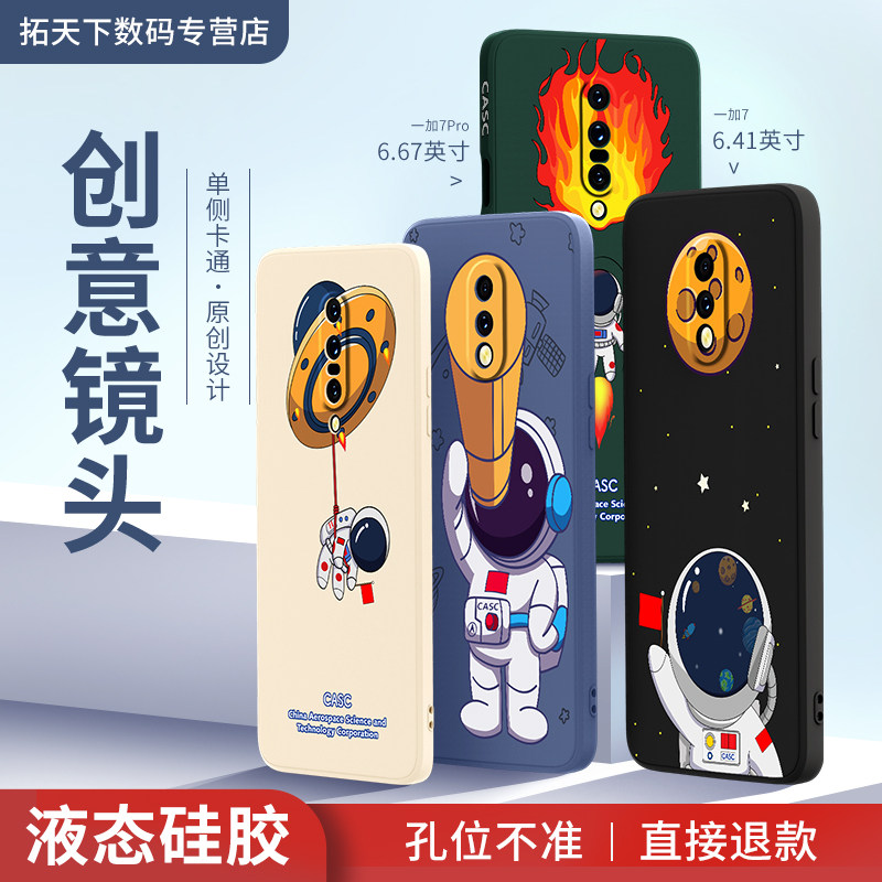 One Plus 7pro Cell Phone Case Creative Men's 1 7 Liquid Silicone Pro All-in-One Fall Resistant Oneplus Seven Girls' Individual Net Red New Ultra Thin Personal Creative Cover Scrub Cover Cosmic P