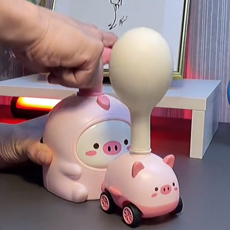 Children's little pink pig feitian power car parent-child interactive aerodynamic car balloon car pressing inertia toy