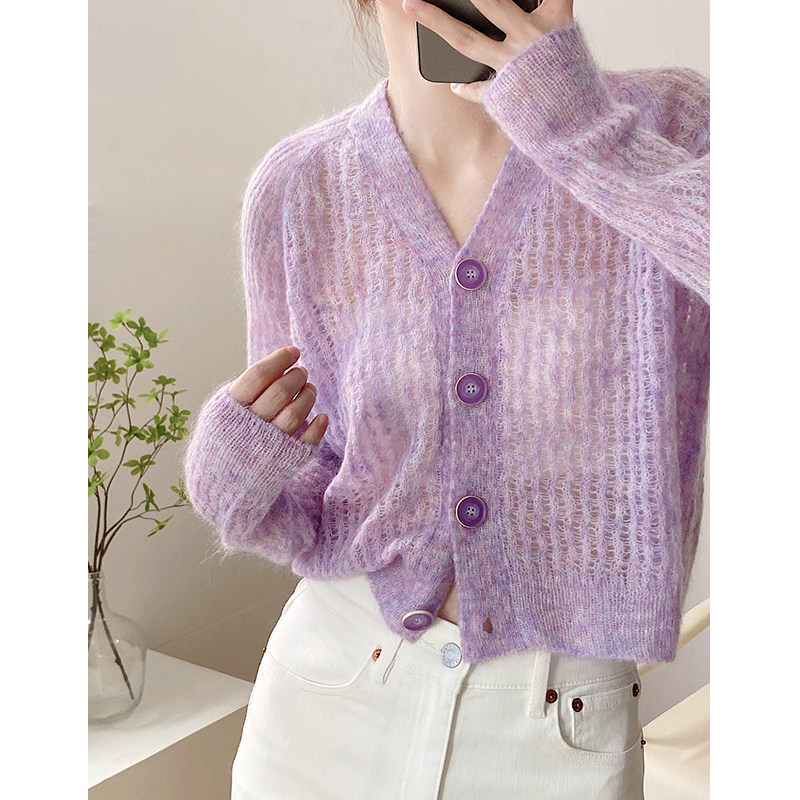 "Caramel" Hollow Mohair Cardigan "Clip Flower Green" Hollow Mohair Cardigan "Clip Flower Purple" Hollow Mohair Cardigan
