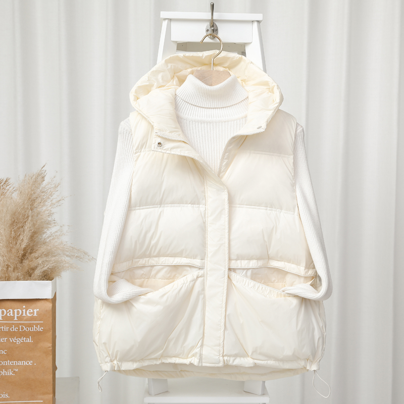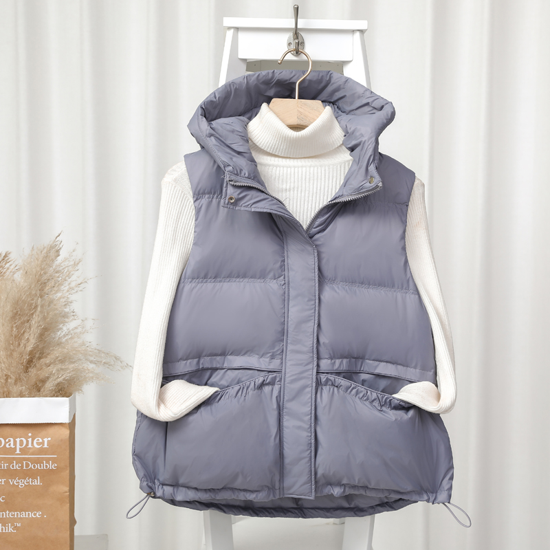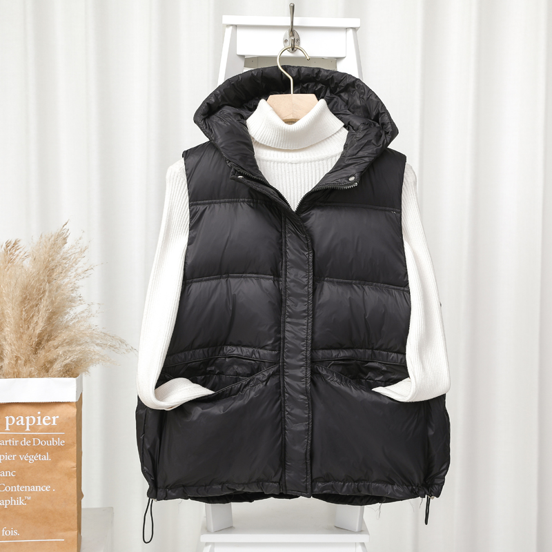 Hooded down vest women short 2021 autumn winter down vest small man Korean version of shoulder horse clip loose coat