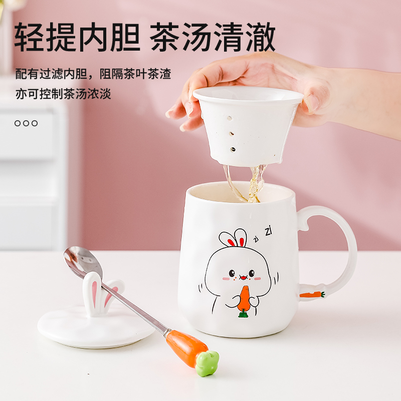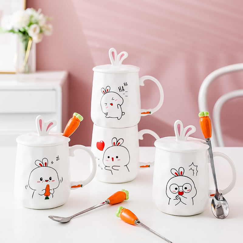 Happy Baby Rabbit-Single Cup Foodie Baby Rabbit-Single Cup Surprise Baby Rabbit-Single Cup Chasing Baby Rabbit-Single Cup Happy Baby Rabbit-Cup Cover Small Steel Spoon Foodie Baby Rabbit-Cup Cover