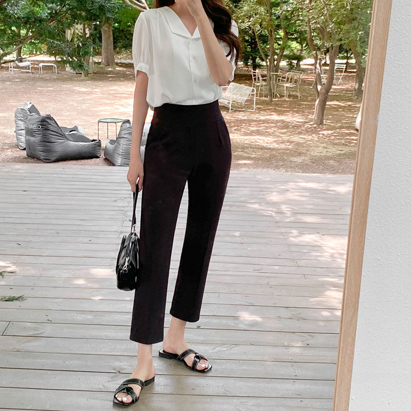 Suction specializes in customized models 22 years Summer new loose tight waist elastic closedown straight cylinder Leisure 100 lap nine-split Western pants