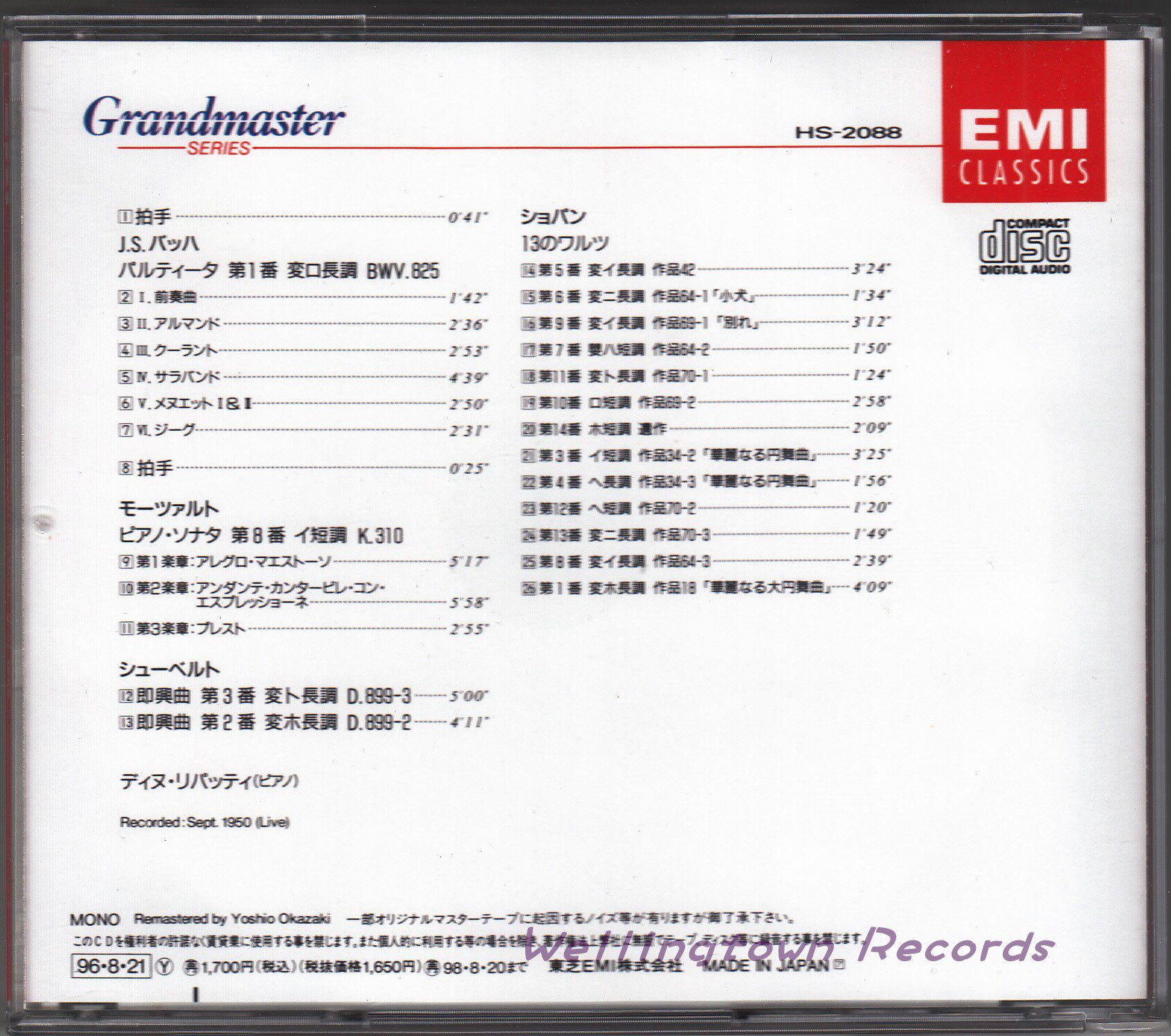 Lipatti's Last Recital 1950 Besancon Live Toshiba 2088 Series