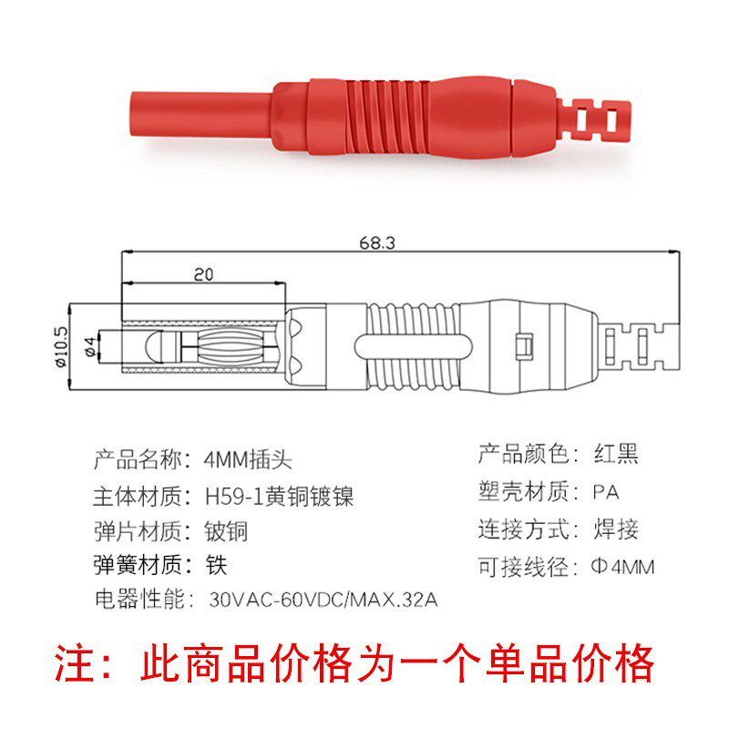 Huijun 4mm retractable jacket banana plug brass plated nickel connector welding type large current 32A60V