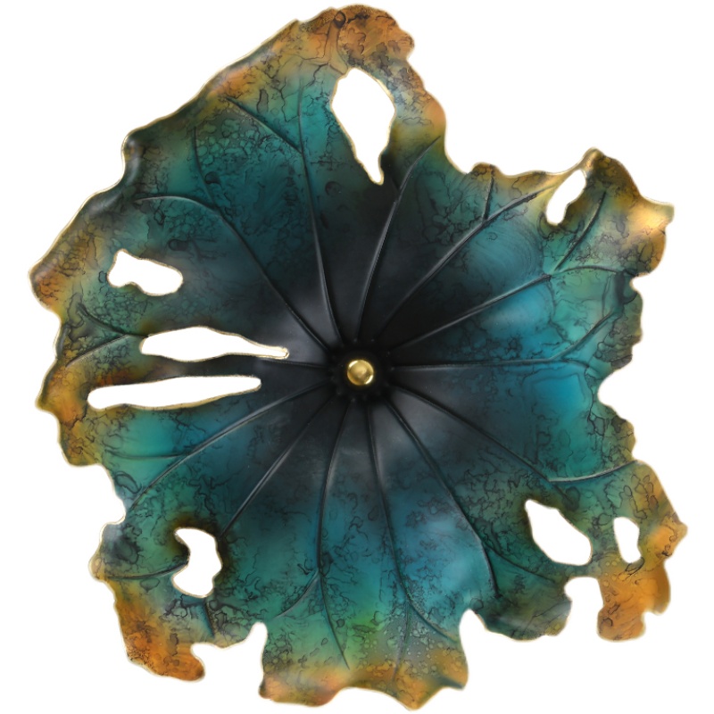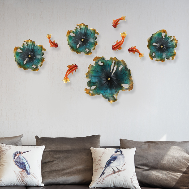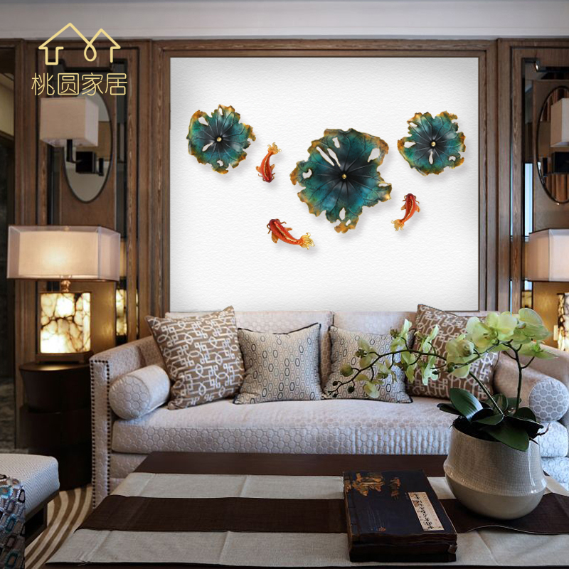 Light luxury modern minimal basalt restaurant background wall 3D carp hanging piece of pure copper lotus leaf wall decoration
