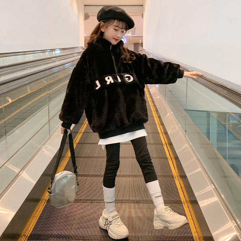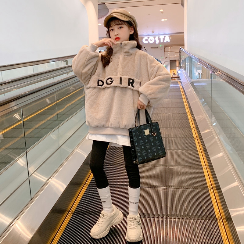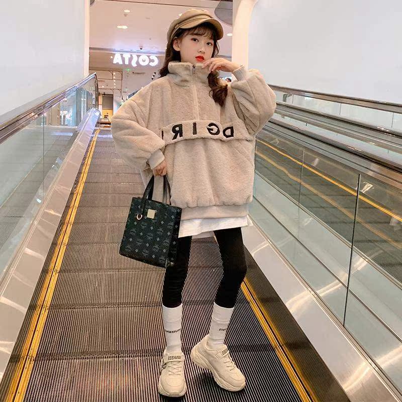 Ohmi children's clothing girls' fleece sweater autumn and winter new Western style middle-aged children's thick coat children's Korean children's clothing