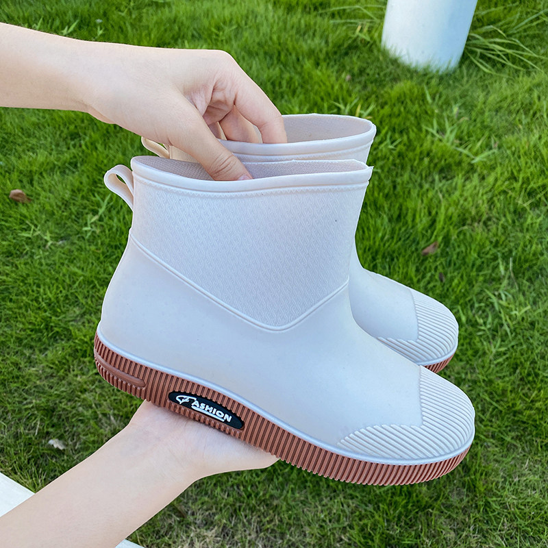 Rainshoe female fashion day adult waterproof thick soles anti-slip lady rainboots wash car outdoor work comfortable glue shoes