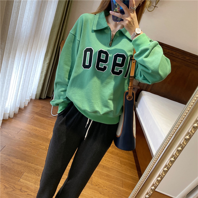 The Korean version of the loose upper body ultra-reduced-age pull-collar design 1990 embroidered blouses coat coat jacket 2021 autumn new