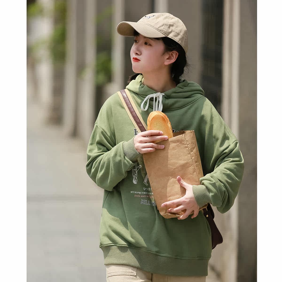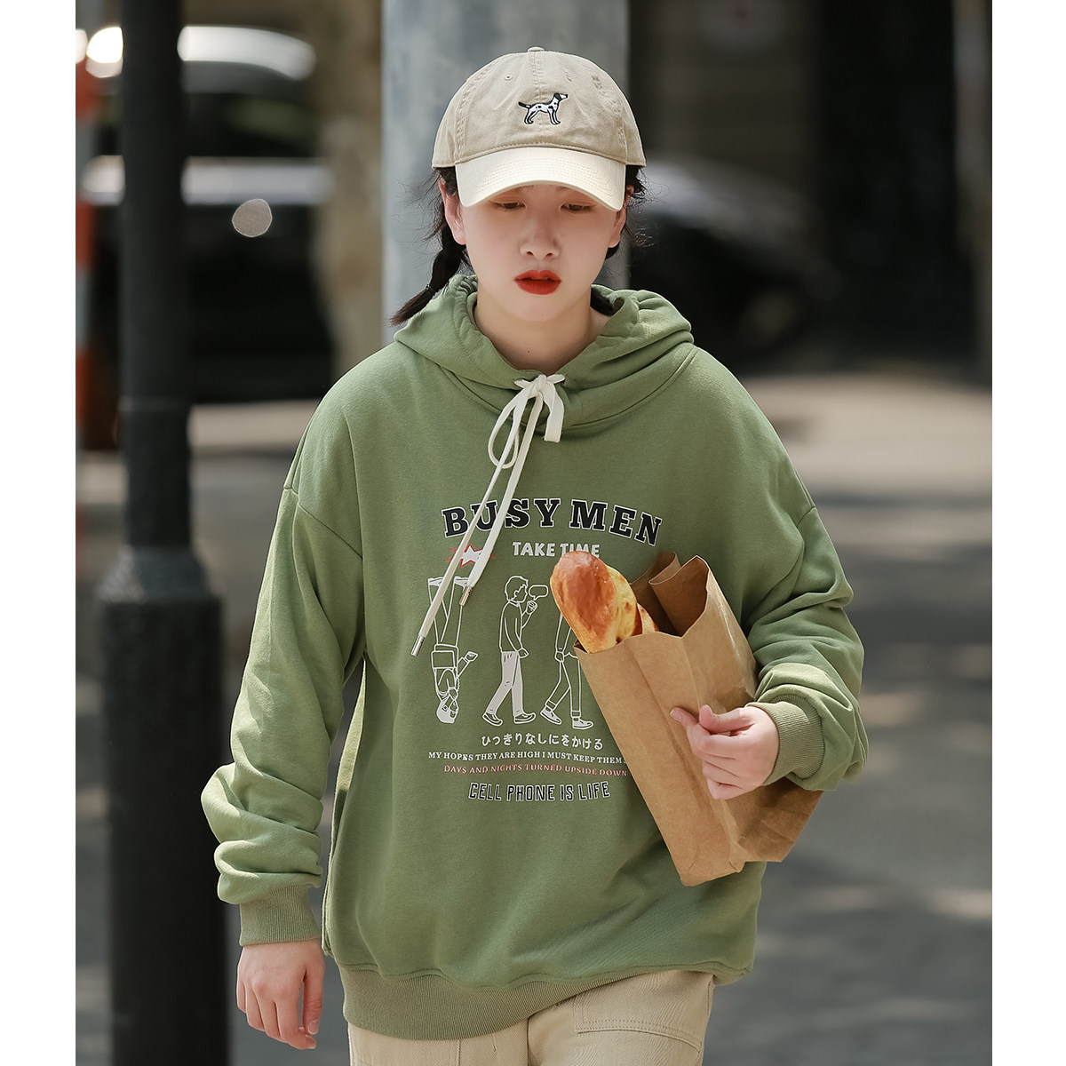 American retro high-quality hooded printed sweater women's spring and autumn thin section preppy style sweet Korean version loose coat trendy