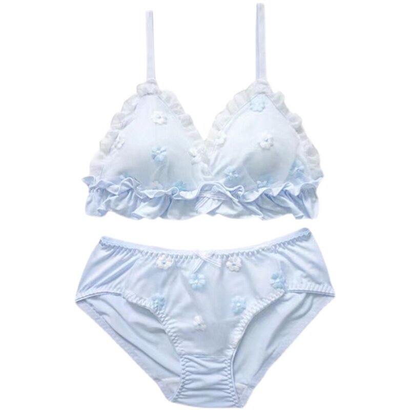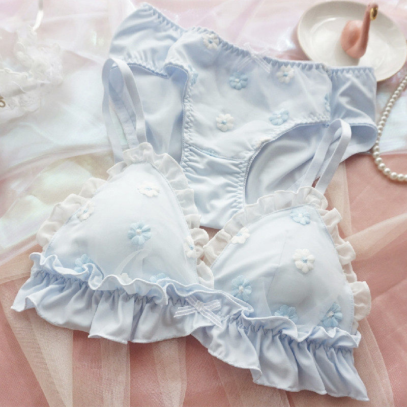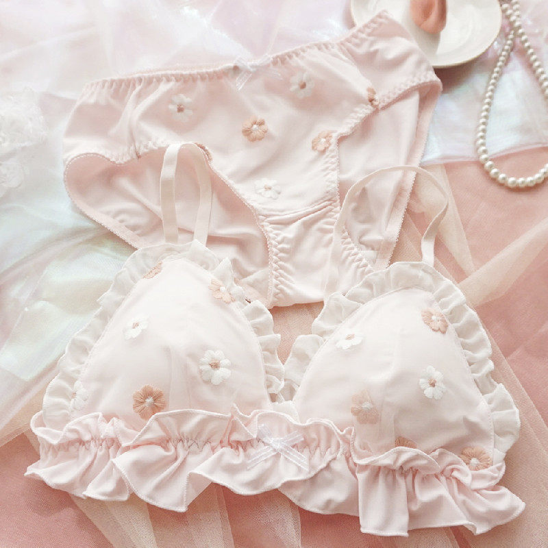 Underwear women fresh and sweet embroidery thin cup comfortable no steel ring triangle plate small chest beautiful back underwear set cute