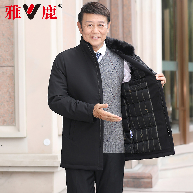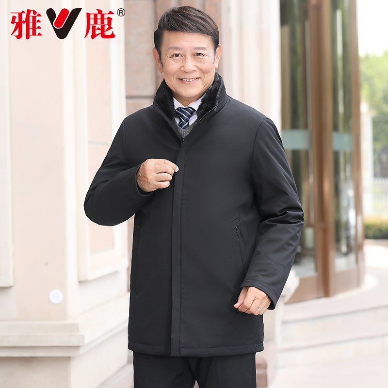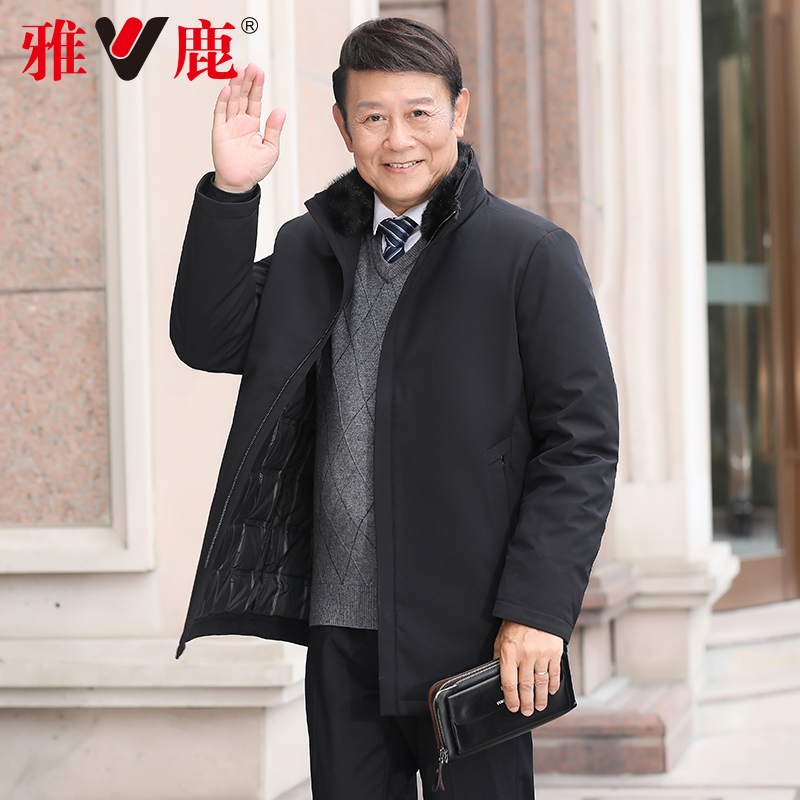 Jadeer Down Suede Men's Short Section Business 2022 Winter New Water Mink Hair Clear Cabin Jacket Mid Aged Dad Clothes