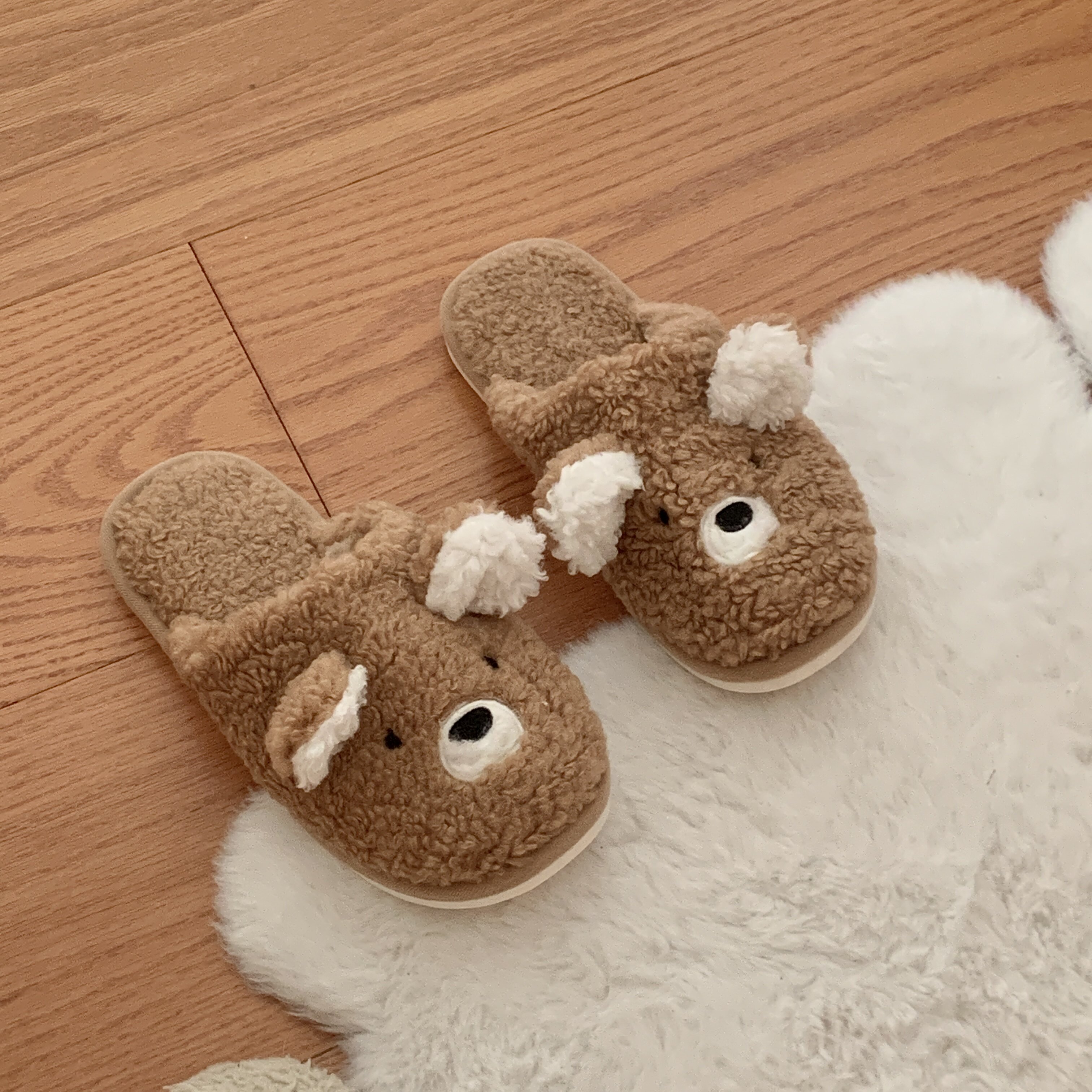 Bater South Korea Ins Cute Lamb Hair Home Warm Hair Wool Shoes Non-slip Cotton Slippers Autumn Winter Long Plush Slippers