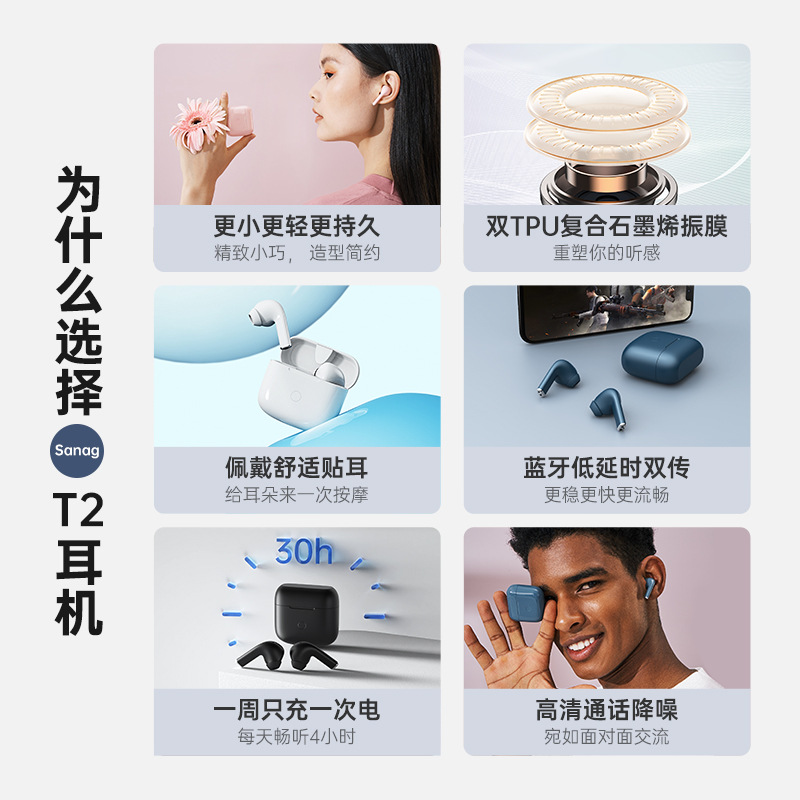 Sanag Bluetooth headphones are truly wireless semi-in-ear private mode smart noise reduction headphones for Apple Huawei