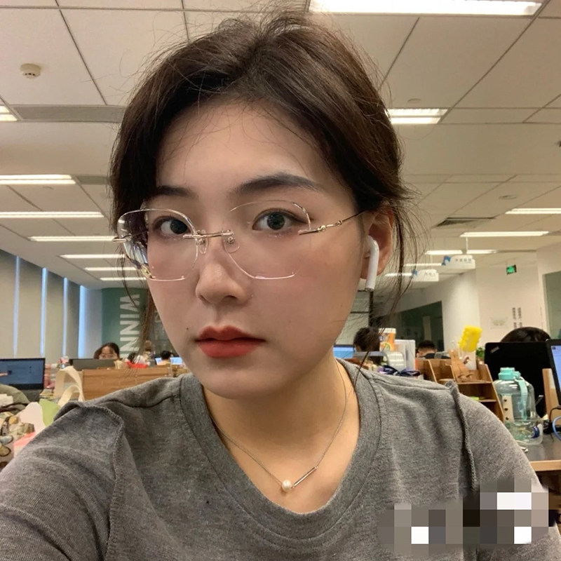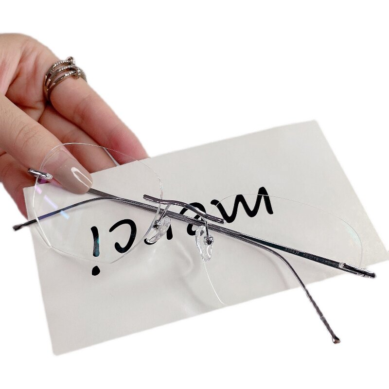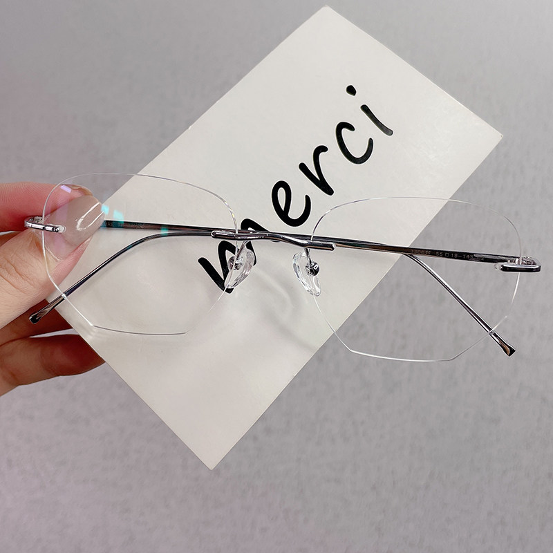 Pure titanium frameless myopia glasses female temperament cutting custom degrees transparent ultra-light myopia glasses men's big face looks thin