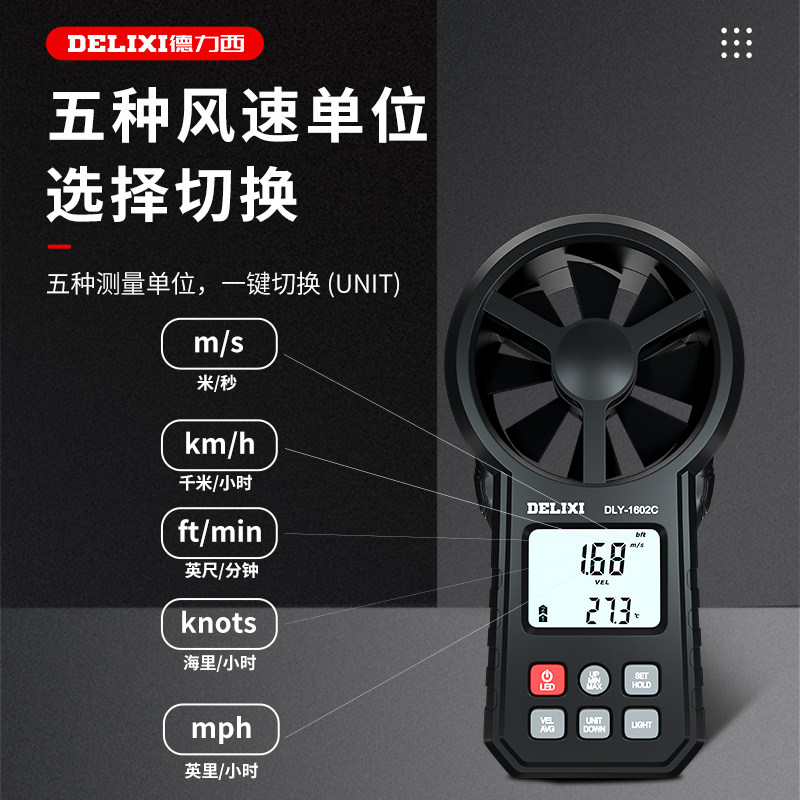 Delixi - body anemometer thermal hand-held high-precision anemometer digital air volume temperature measuring instrument