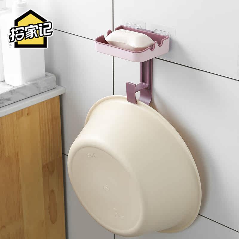 Soap Box Bathtub Basin Hook Soap Box Shelf Draining Powder Room Sticky Hook Punch-Free Wall Mounted Basin Rack