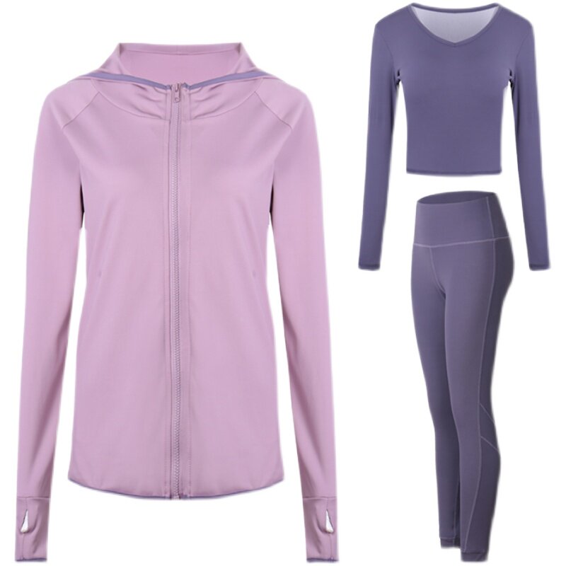 2021 Sport suit Women's autumn winter long sleeves Lianhood Running speed dry casual professional fitness yoga three-piece set