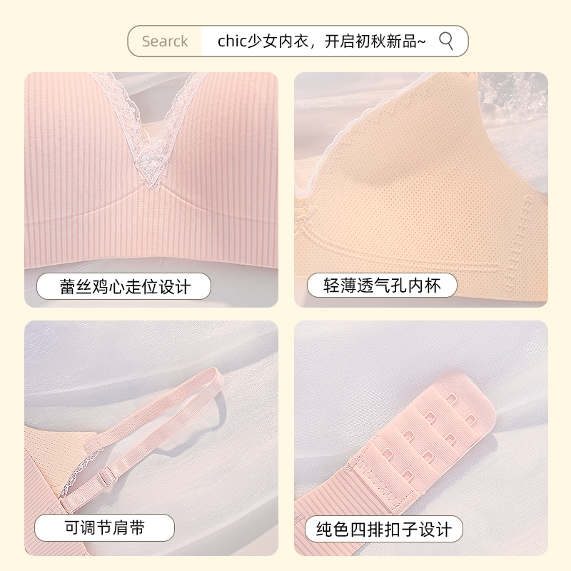 No-mark underwear female university student small breasted gathering to collect deputy milk anti-sagging adolescent girl without steel ring flat chest special thin section